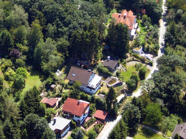 Ahh.. schon besser. Das Haus hinter dem Koi-Teich.